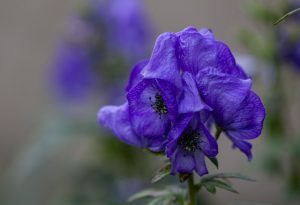 L’Aconit se distingue par de longues et minces grappes de fleurs bleu indigo
